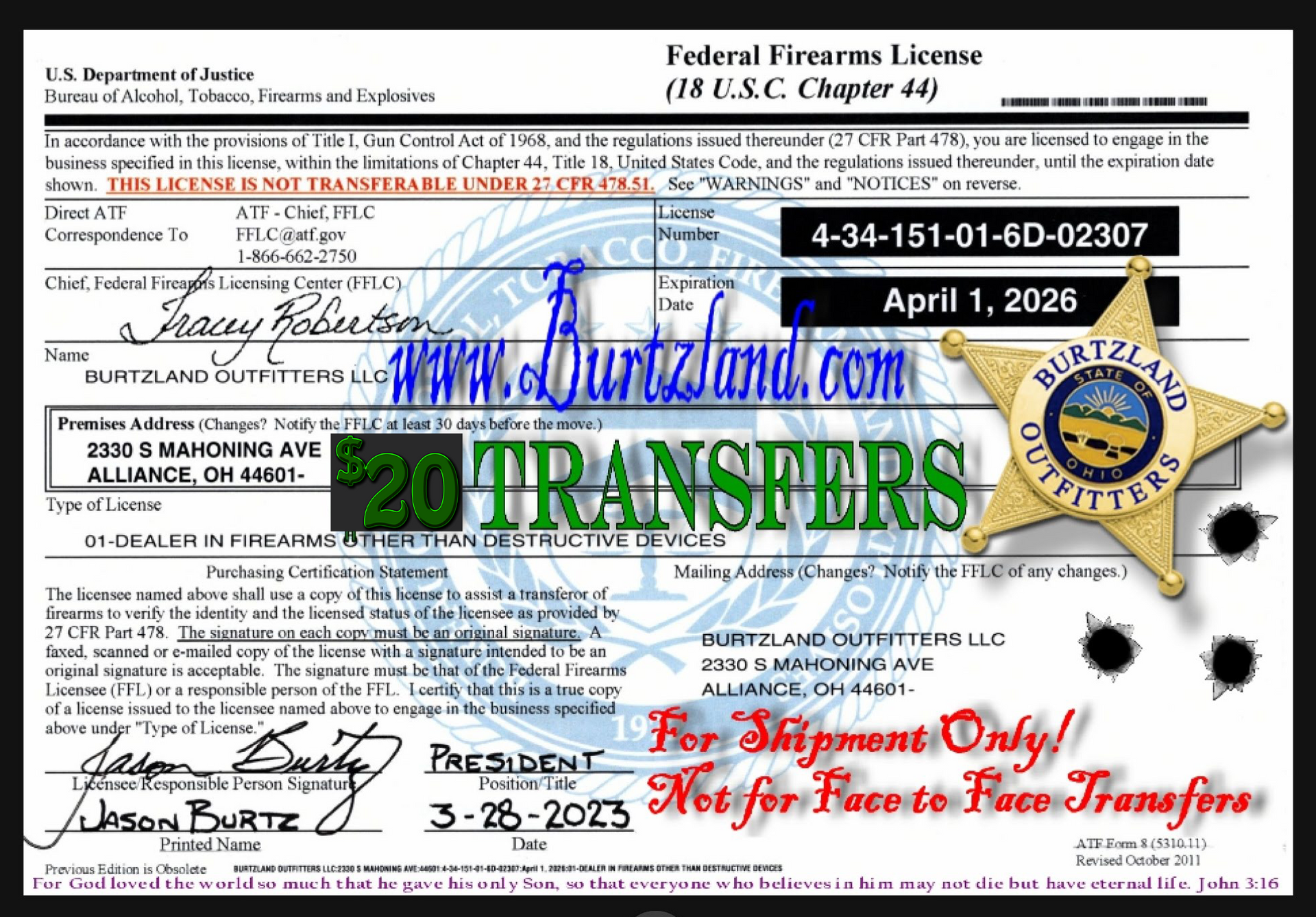 If you purchase a firearm online, you're going to need an FFL to ship it to. We're here for you! Once you complete the purchase, copy the license below and Email it to the seller. Instruct them to include your name and phone number in the box when they ship. If they are an FFL, they know to send us a copy of their license. If it's a private individual, be sure to instruct them to send your contact info as well as a GOOD Color copy of their drivers license. Without this, we have no way to enter it into the system and can't complete the transfer until we get it.